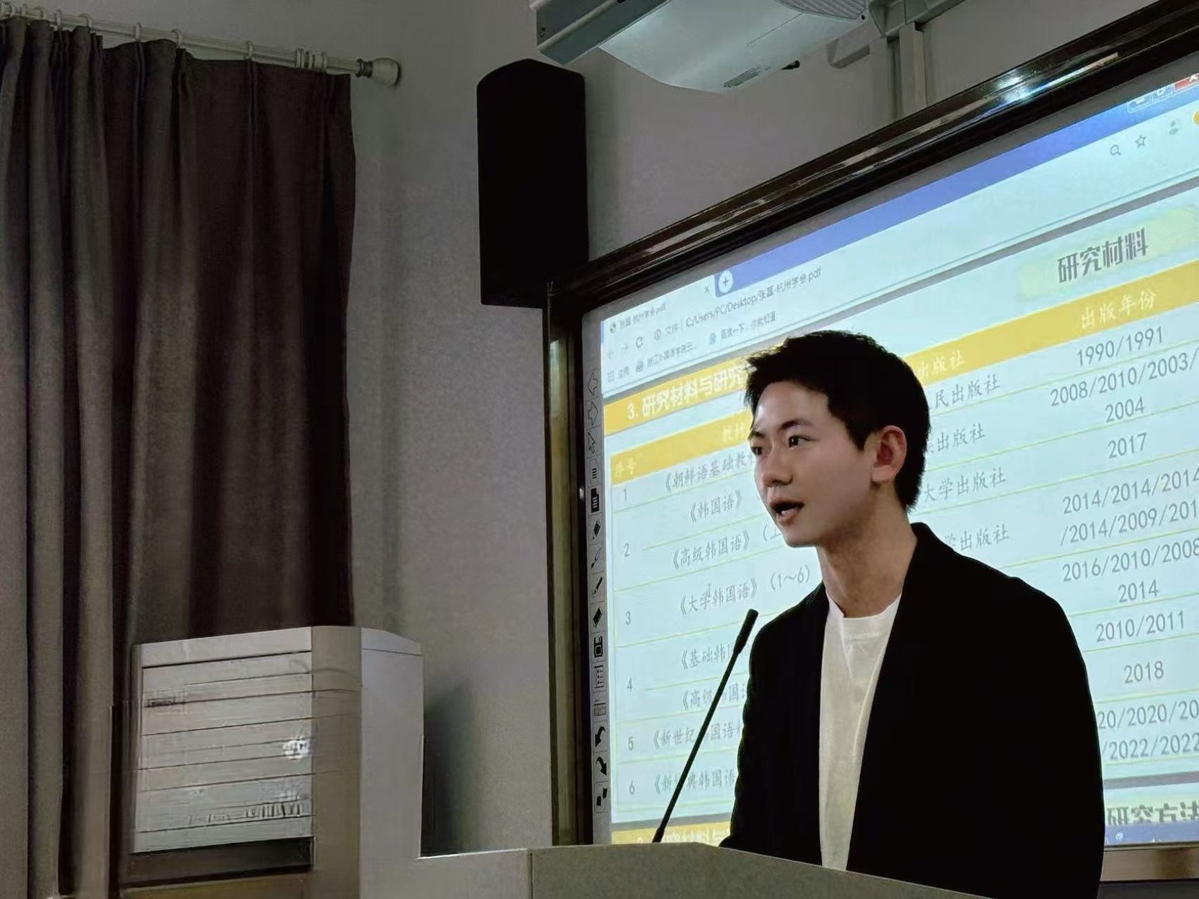 会程中,我系博士后张磊老师以“中国大学朝鲜(韩国)语专业精读教材中的朝鲜元素分析”为题进行发言,提出了朝鲜语专业精读教材需融入朝鲜元素的依据,并从出现频度、出现阶段、出现栏目、内容主题和叙述视角五个方面对31本教材中出现的朝鲜元素进行了细致分析。